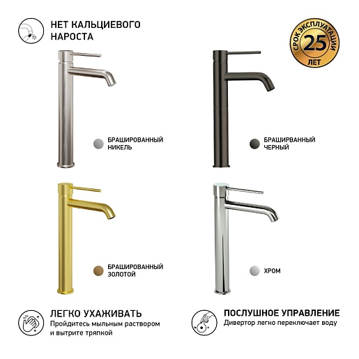 Paini Смеситель для раковины Cox 78PW205OLL высокий, брашированный никель