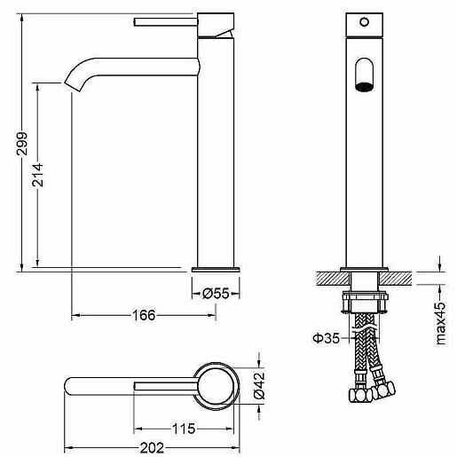 - Управление: однорычажное, система регулировки силы струи и температуры воды.