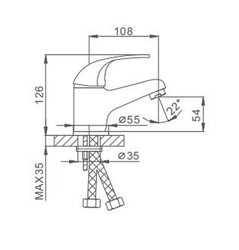 - Высота излива: 5.4 см.