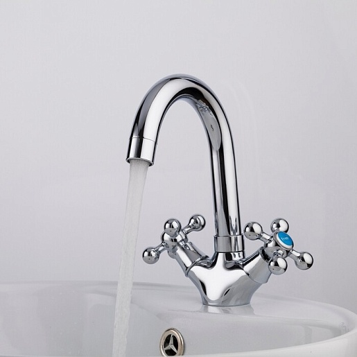 - Поворотный излив позволяет повернуть смеситель для удобства использования раковины.