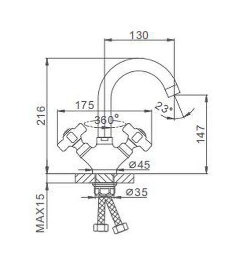- Поворотный излив позволяет повернуть смеситель для удобства использования раковины.