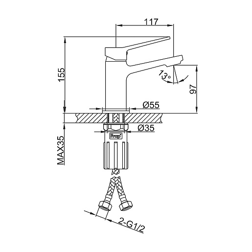 - Высота излива: 9.7 см.