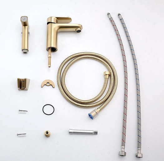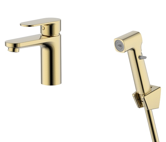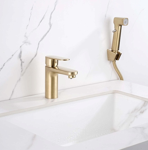 Aquatek Смеситель для раковины Ника AQ1812BG с гигиеническим душем, золото шлифованное