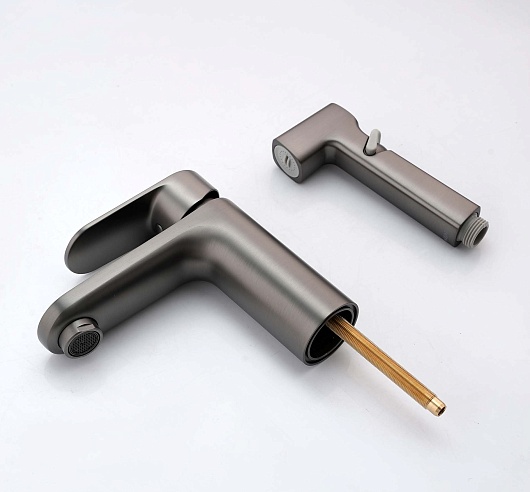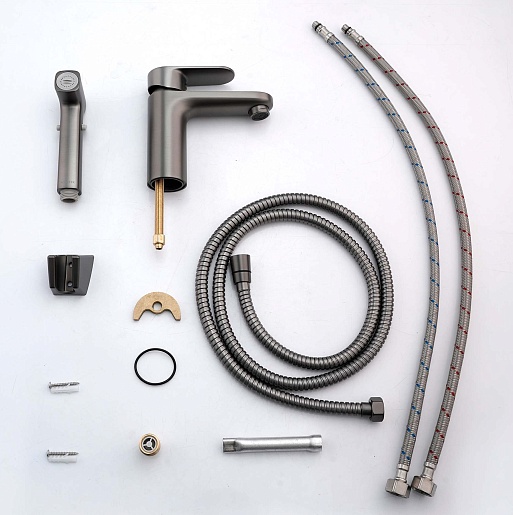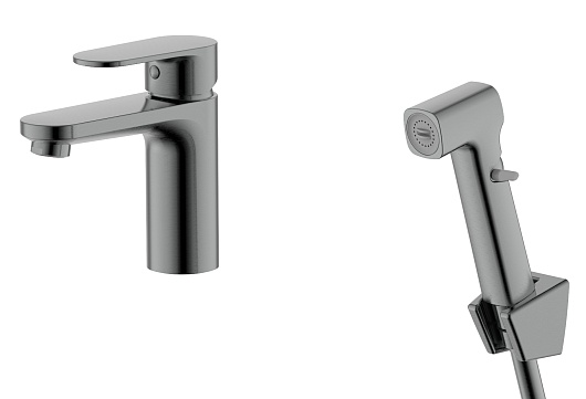 Aquatek Смеситель для раковины Ника AQ1812BGM с гигиеническим душем, оружейная сталь