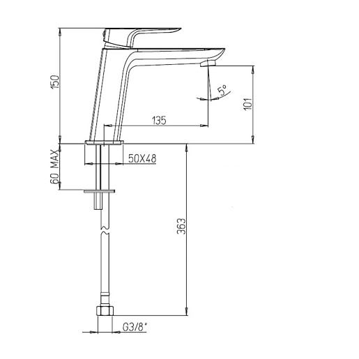 Paini Смеситель для раковины Nove 09CR205ME с длинным изливом, хром