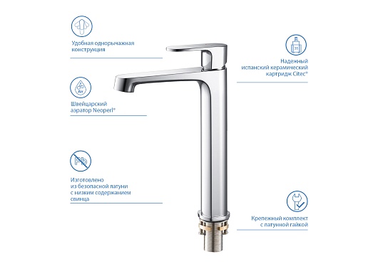 - Высота излива: 23.9 см.