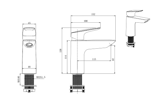 - Управление: однорычажное, система регулировки силы струи и температуры воды.