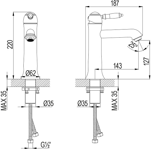 Смеситель для раковины Lemark Villa LM4837C с донным клапаном.