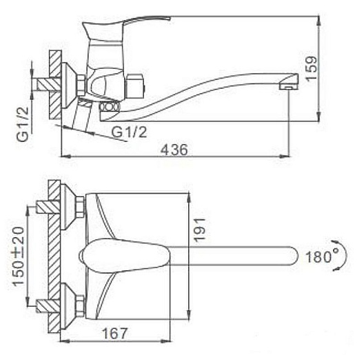 - Длина излива: 43.6 см.