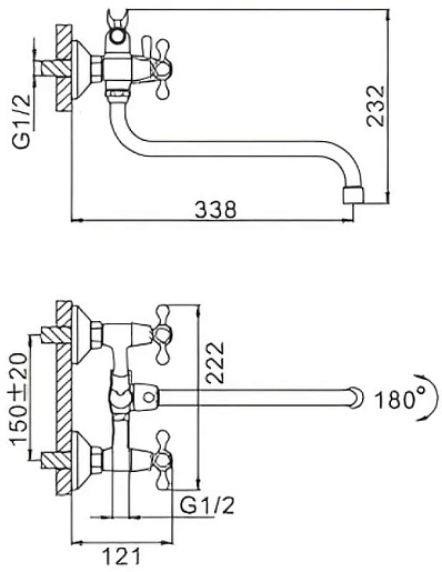 - Длина излива: 33.8 см.