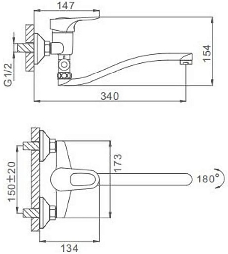 - Длина излива: 34 см.