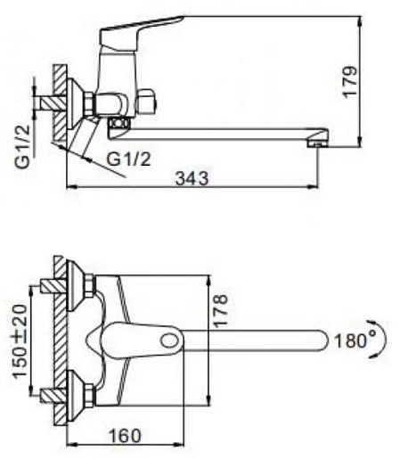 - Длина излива: 34.3 см.