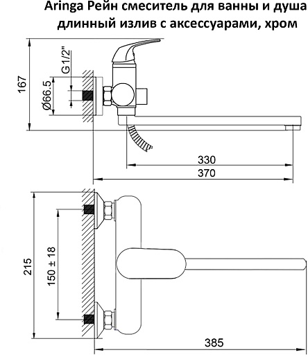 Aringa Смеситель для ванны и душа Рейн AR02001CH универсальный хром