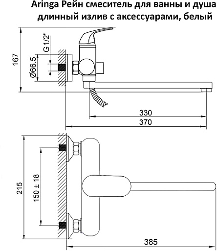 Универсальный смеситель для ванны с душем Aringa Рейн AR02002WH.