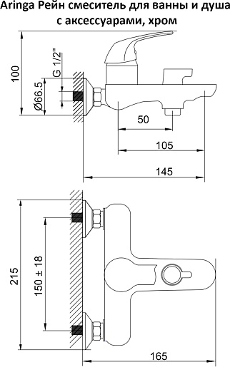 Aringa Смеситель для ванны и душа Рейн AR02004CH хром