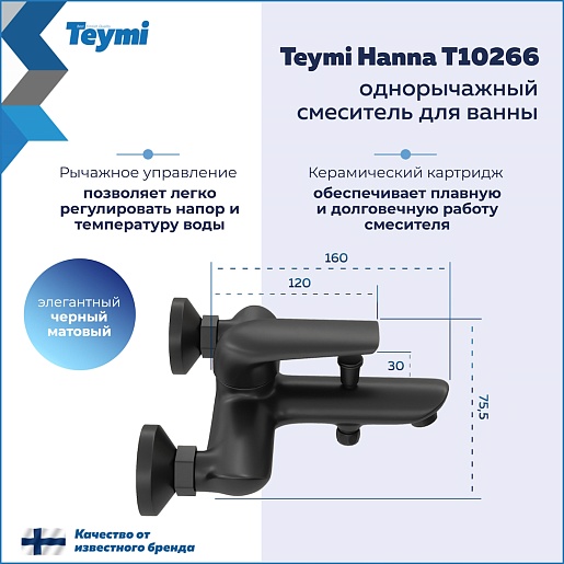 Teymi Смеситель для ванны с душем Hanna T10266 черный матовый