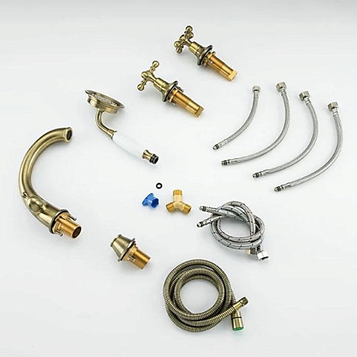 - Комплект из латуни износостойкий, устойчивый к ржавчине и известковому налету, долговечный и простотой в уходе.