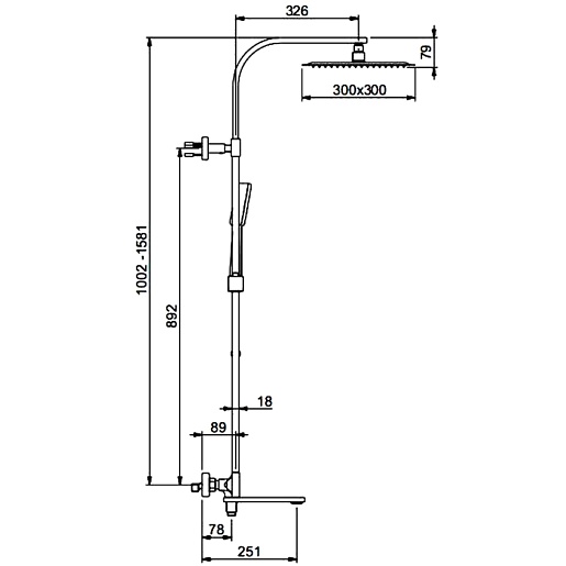 - Вылет верхнего душа: 40.5 см.