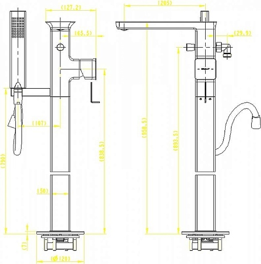 Bravat Смеситель для вынны с душем Phillis F656101C-B3-ENG хром напольный