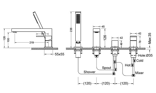 Aquatek Смеситель на борт ванны Либра AQ1648CR хром
