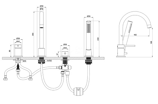 - Встроенный девиатор автоматически переключает поток с душа на излив при закрытии воды.