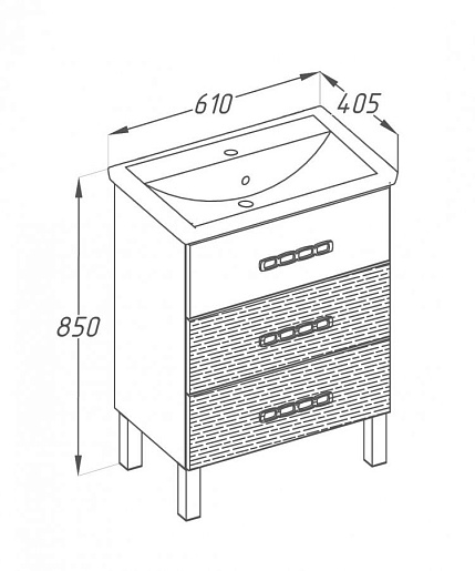 Описание: напольная тумба с тремя выдвижными фасадами. В комплект входит керамическая раковина Фостер 60.