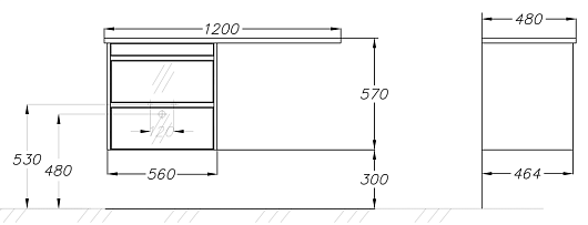 - Тумба под раковину подвесная Фреш 56 с двумя выдвижными фасадами.