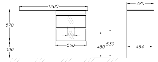 - Тумба под раковину подвесная Фреш 56 с двумя выдвижными фасадами.