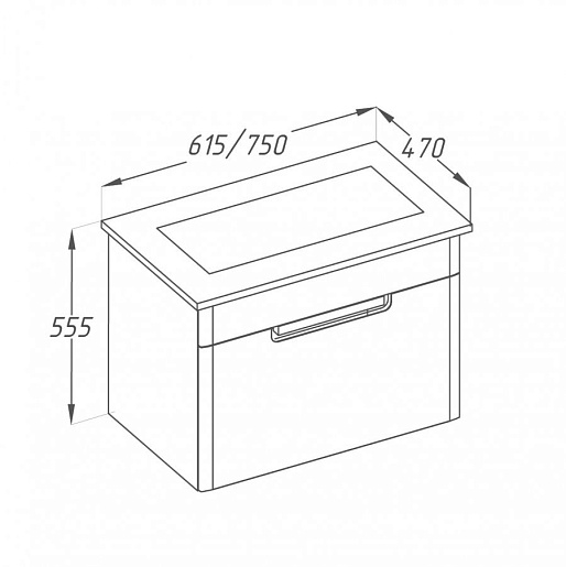 - Тумба под раковину подвесная Гранда 75, один выдвижной фасад.