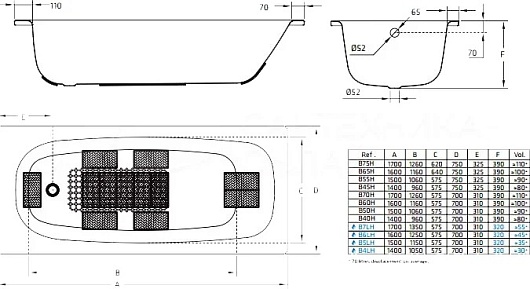 BLB Стальная ванна Universal 150/70 с шумоизоляцией B50HAH001 без опоры