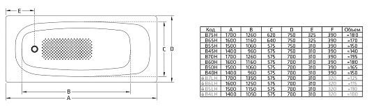 Стальная ванна Universal B70H handles 170/70 с шумоизоляцией без опоры