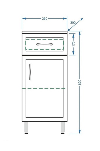 Оснащение: механизм доводчика, ящик, распашной фасад, ножки.