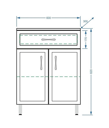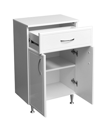 Оснащение: механизм доводчика, ящик, распашные фасады, ножки.