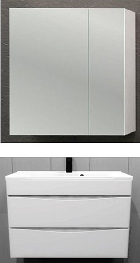 Описание: влагостойкое зеркальное полотно, шкафчик, полки.