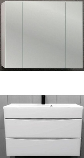 Описание: влагостойкое зеркальное полотно, шкафчики, полки.