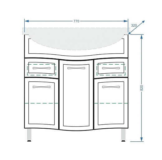 - Тумба под раковину Концепт 80 с распашными фасадами и ящиками, доводчики, арт. SP-00000128