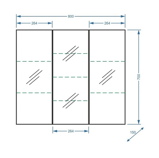 Описание: влагостойкое зеркальное полотно, шкафчики, полки.