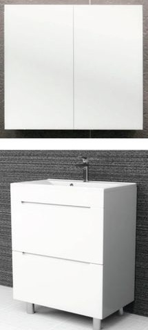 Описание: влагостойкое зеркальное полотно, шкафчик, полки.