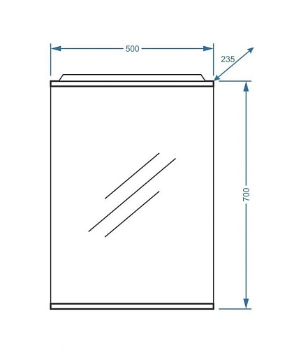 Описание: влагостойкое зеркальное полотно, полка, подсветка.