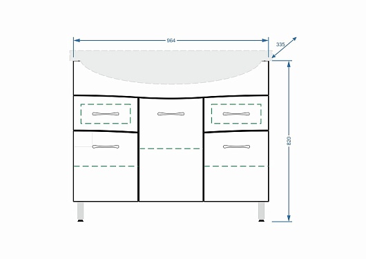 - Тумба под раковину Волна 100-8 с распашными фасадами и ящиками, доводчики, арт. SP-00000136