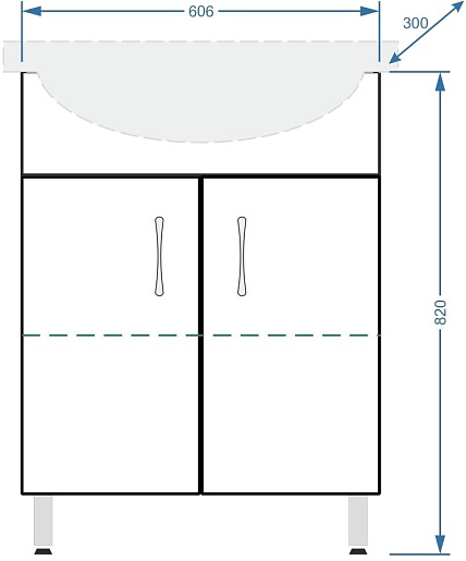 Комплектация: тумба, раковина, ножка (4 шт.).