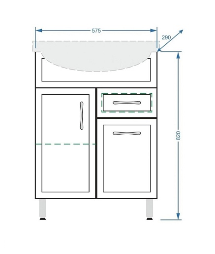 - Тумба под раковину Концепт 60 с распашными фасадами и ящиком, механизм доводчика, арт. SP-00000053