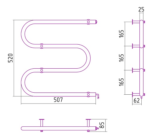Стилье Полотенцесушитель электрический №3 М-образный 500х500