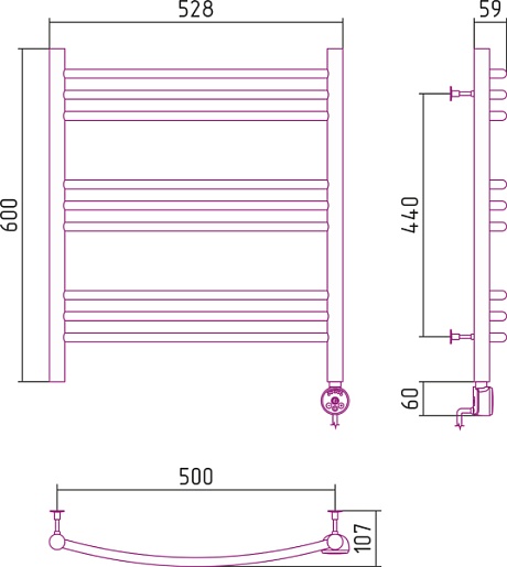 Стилье Полотенцесушитель электрический Формат 10 ТП 600х500