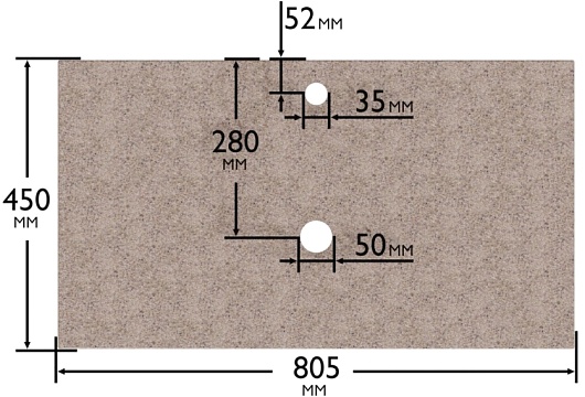 - С вырезом под сифон и смеситель.