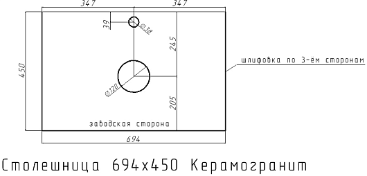 Столешница из керамогранита обеспечивает устойчивость к высокой влажности и перепадам температур, что исключает возможность появления плесени и грибка. Керамогранитный сплав обладает высокой прочностью и износостойкостью. Гладкая матовая поверхность и текстура, напоминающая цвет темный графит является универсальным решением практически для любого интерьера. Столешница оснащена отверстиями для смесителя и слива. Керамогранит состоит из натуральных компонентов, что исключает наличие вредных химических и токсических примесей