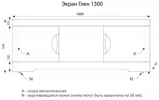 Экран для ванны раздвижной Style Line Глен 1300 - арт. СС-00002294.