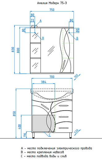 Тумба с раковиной "Амелия 75" — арт. ЛС-00000010 / ЛС-00000150