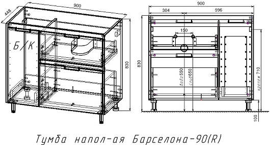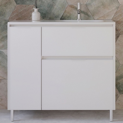 Тумба под раковину Барселона 90 R белая с б/к Люкс Plus