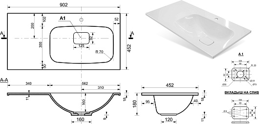 Тумба с раковиной Style Line Барселона 90 R подвесная белая с б/к Люкс Plus - арт. СС-00002280 / СС-00002281.